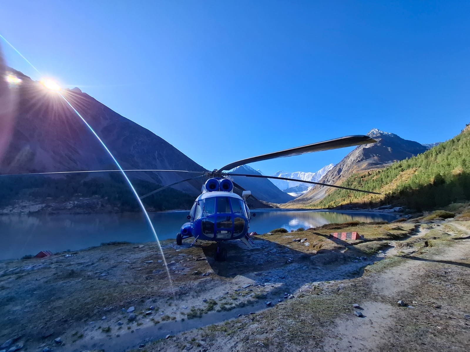 Дорога до Тюнгура займёт 1 час. На месте пересаживаемся в вертолёт Ми-8Т и совершаем облёт Белухи, посадка на Аккемском озере с видом на ледовую стену.После прилёта в Тюнгур едем обедать, переполненные эмоциями.
